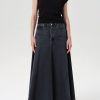 Looks Like: Vintage marbled light indigo denim skirt with fading, whiskering and a clean hem