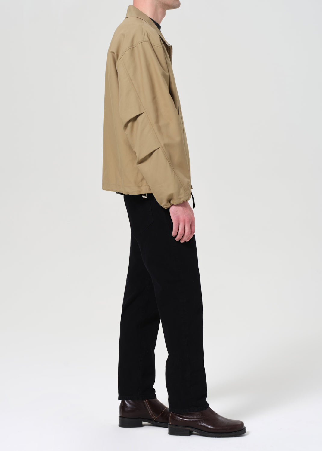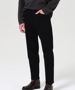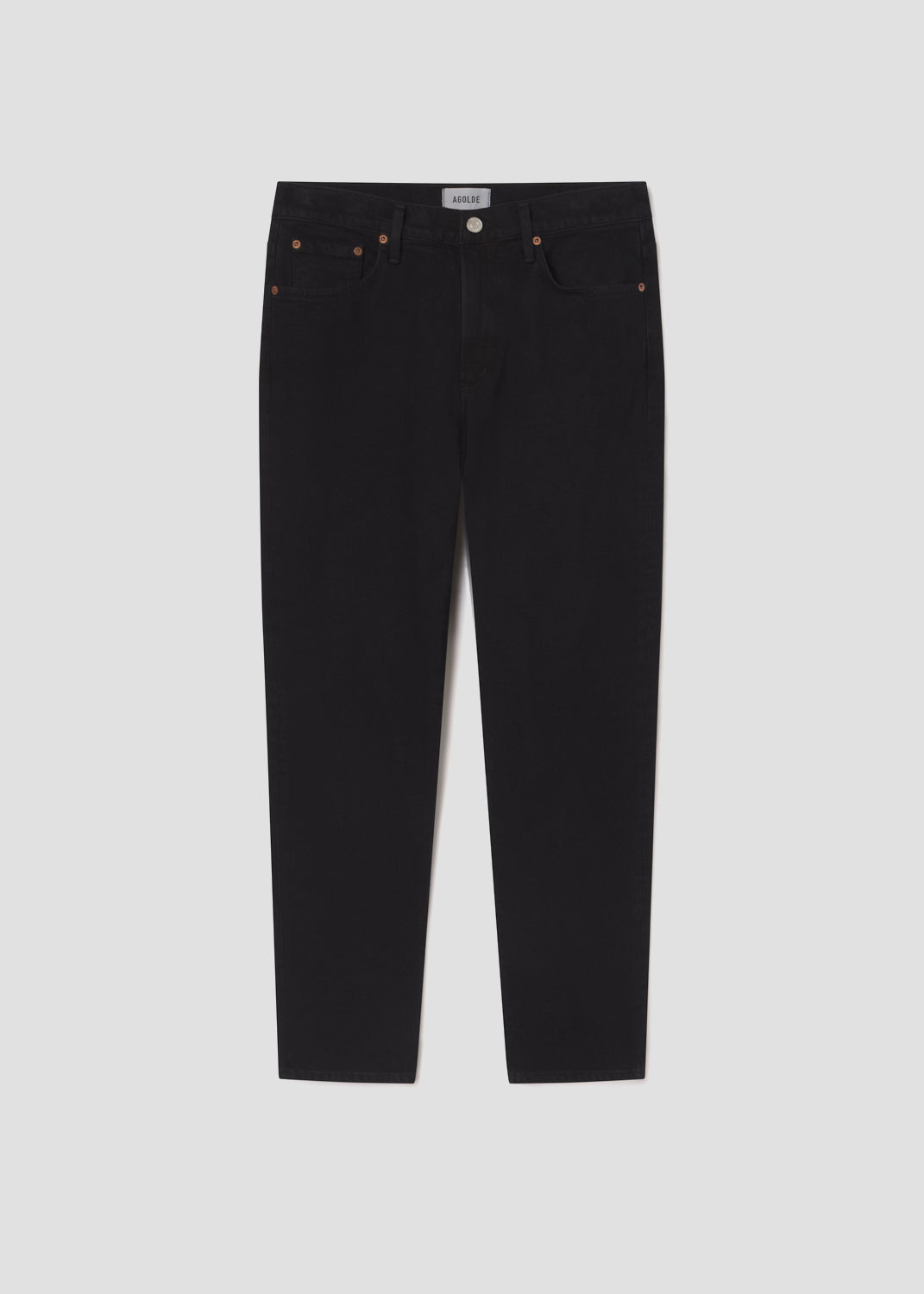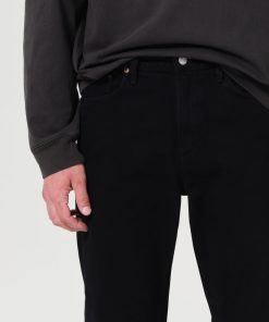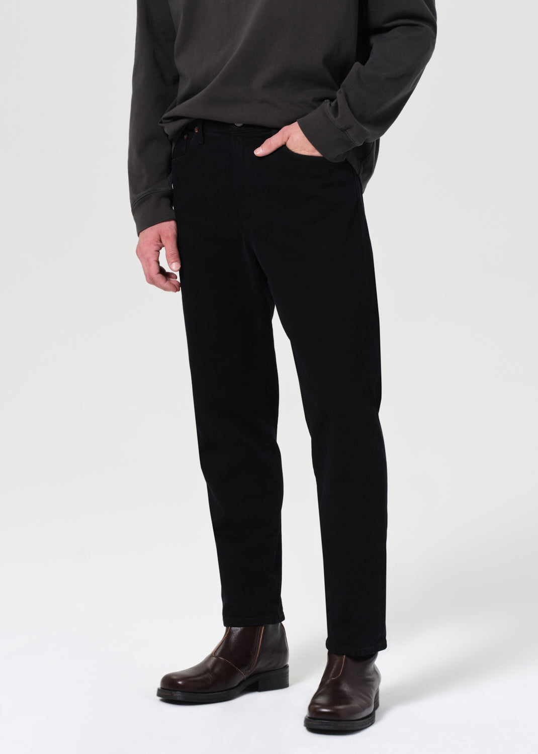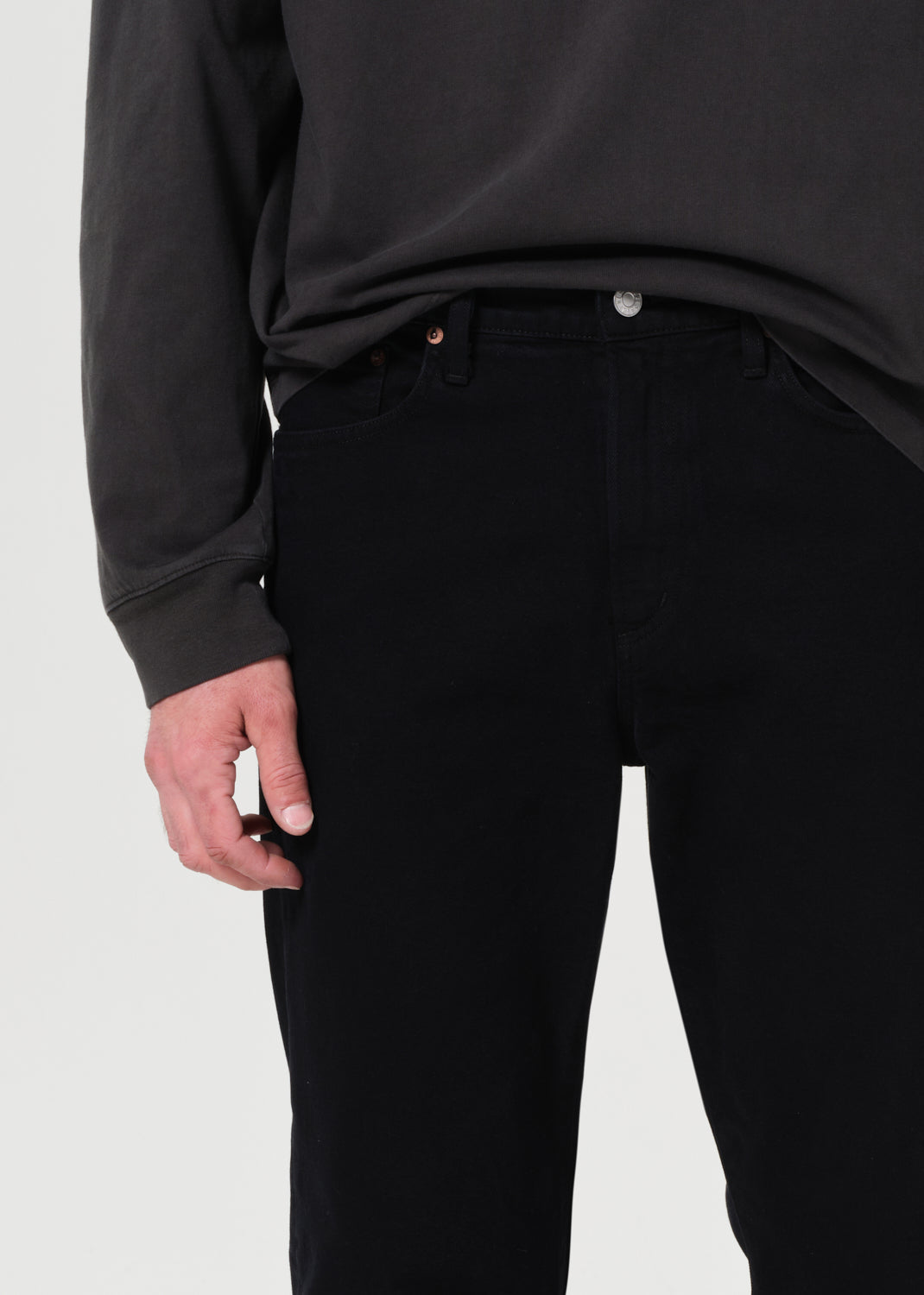 The Curtis is a classic mid-rise with a relaxed top block and an easy, straight leg that tapers at the ankle. Crafted from comfort stretch denim in a clean, overdyed black wash with a soft, broken-in feel.