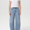 A baggy, mid-rise fit crafted from rigid, heavyweight denim in dark worn-in vintage indigo, featuring fading, marbling, and whiskering details. Made from 100% Cotton, it offers a soft hand feel for all-day wearability.