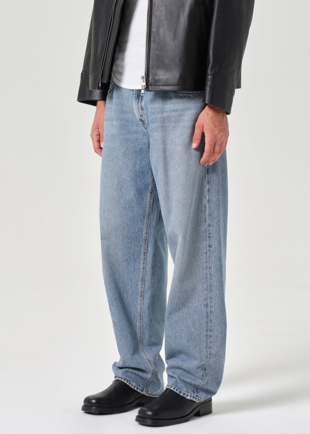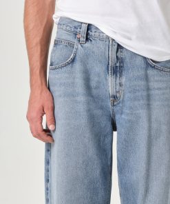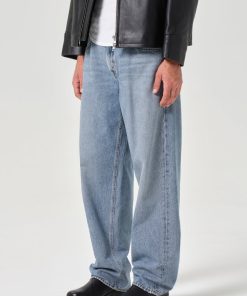 This low slung style features ultra-exaggerated pockets and an easy tapered fit.