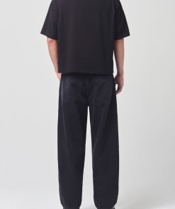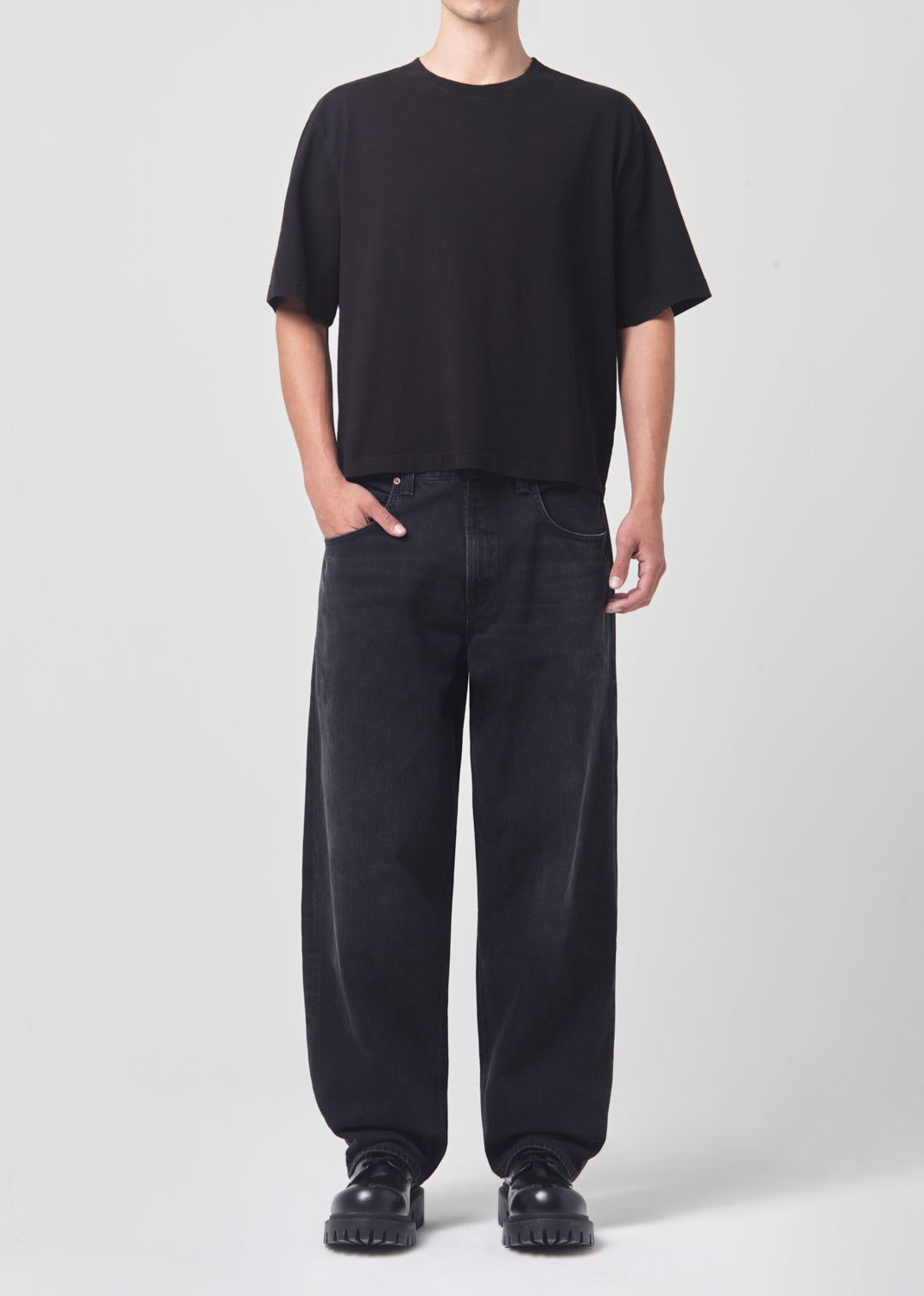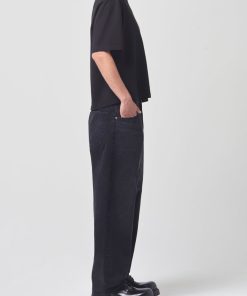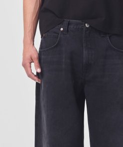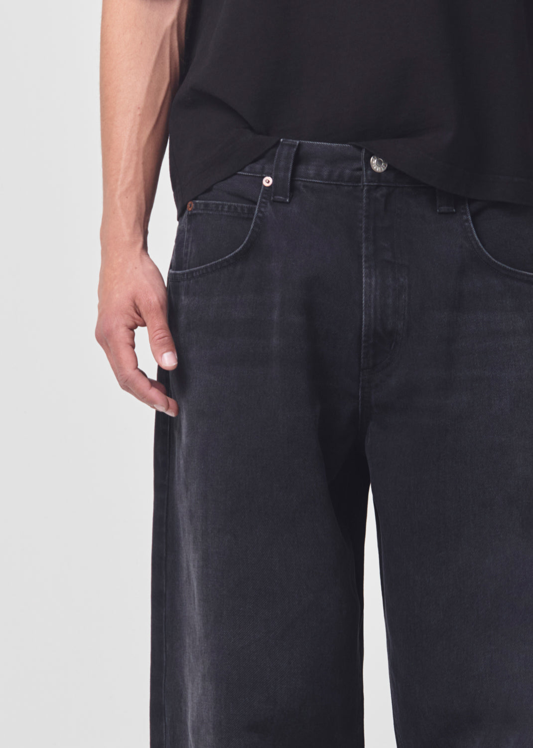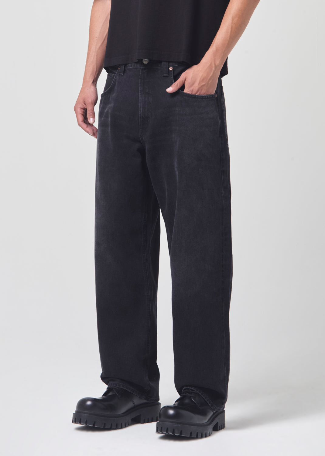 This low slung style features ultra-exaggerated pockets and an easy tapered fit.