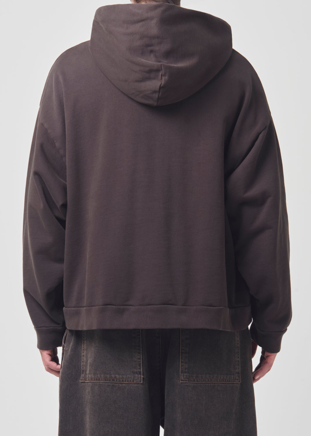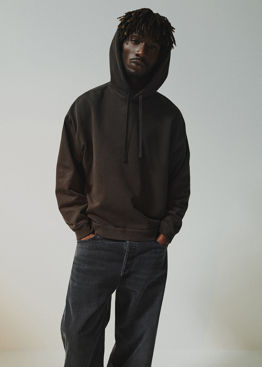 Classic hoodie silhouette crafted from an overdyed, textural heather.