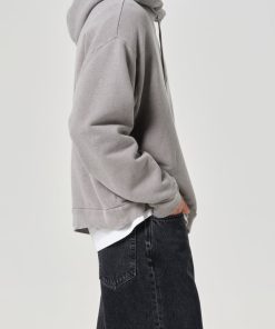 Classic hoodie silhouette crafted from an overdyed, textural heather.