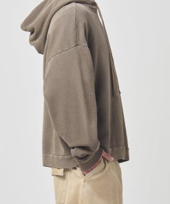 Classic hoodie silhouette crafted from an overdyed, textural heather.