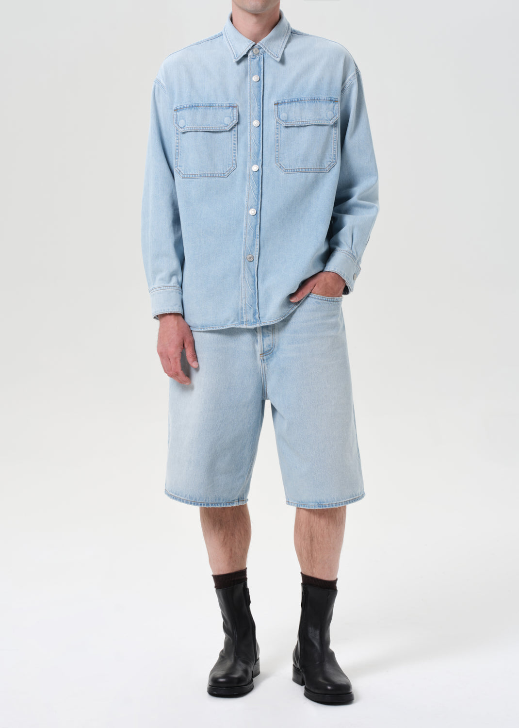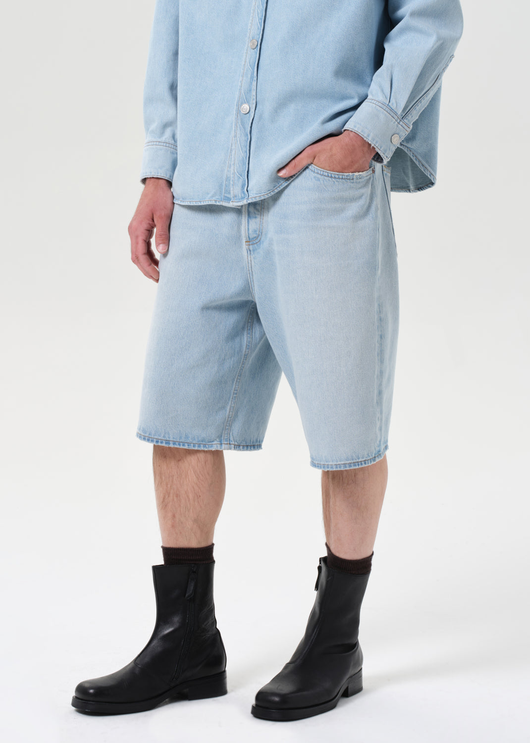 Skate short with an over the knee inseam giving a relaxed silhouette.