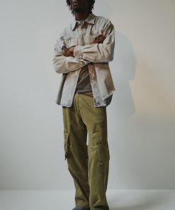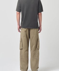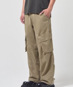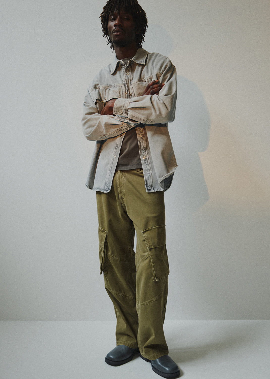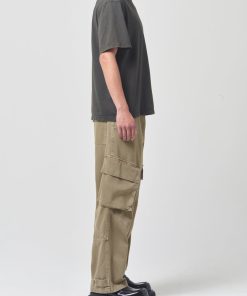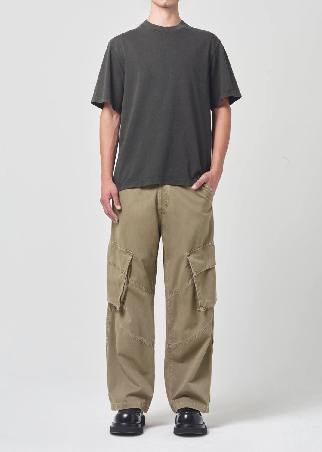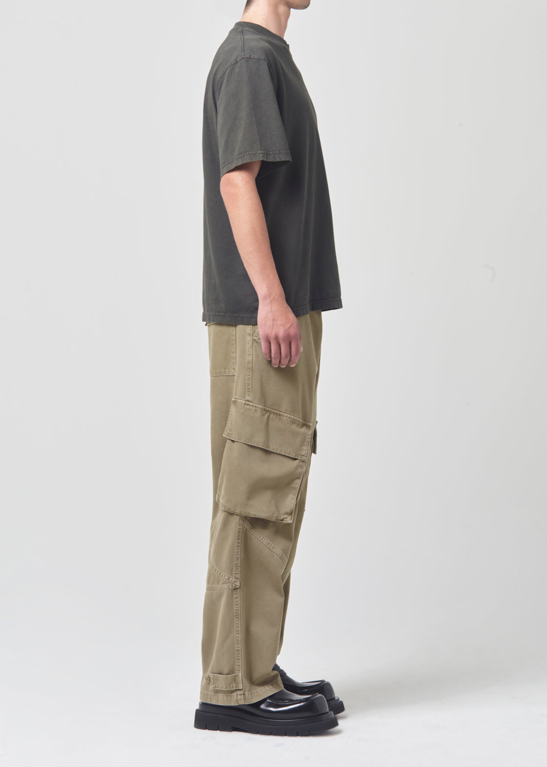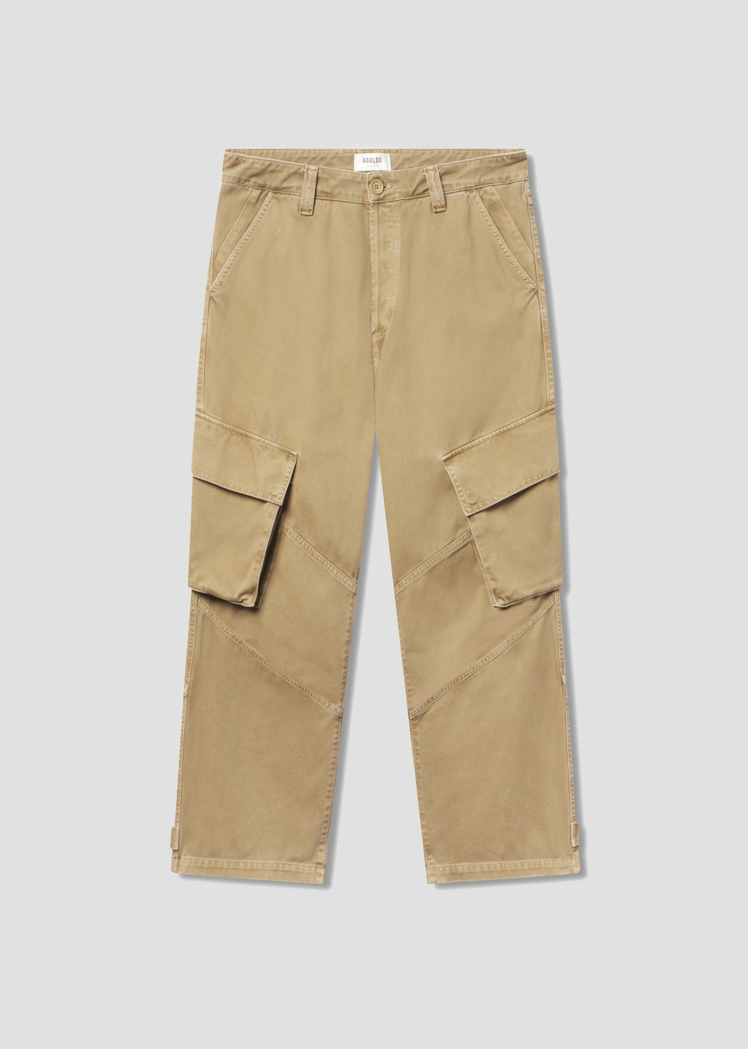 Utility inspired cargo with added dimension, exaggerated pockets and an adjustable leg opening tab.