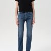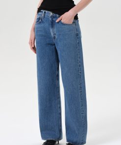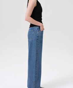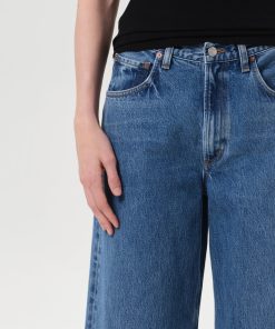 The Low Curve Jean features a mid-rise fit with a soft ease at the waist, highlighted by a subtle curved outseam and a gentle taper for a flattering, streamlined silhouette. Crafted from bright medium indigo denim with marbling, it has a sophisticated yet lived-in feel, offering a contemporary take on relaxed, effortless style. Made from regenerative cotton, this versatile jean can easily be dressed up or down, pairing seamlessly with everything from casual tees to polished blouses.