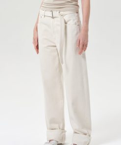 The Cuffed Taper is a relaxed, mid-rise silhouette with volume through the leg that subtly narrows at the ankle. Crafted from rigid, non-stretch regenerative cotton denim with a soft hand, this light beige wash is finished with an optional cuff for added shape and styling versatility. Pair with a fitted knit or crisp shirting to balance the proportions.
