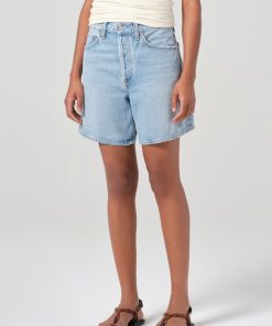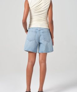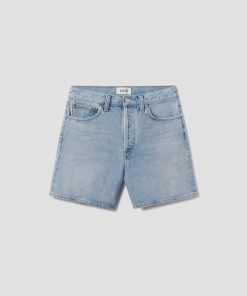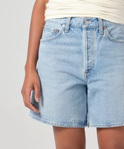 The Dame Short is crafted from regenerative cotton in vintage marbled indigo denim, offering a unique, worn-in look. With a high-rise fit, relaxed silhouette, and wide leg opening, these shorts offer the perfect blend of ease and style. The clean hem adds a crisp finish, making them perfect for pairing with a simple tank or oversized shirt for an effortlessly elevated summer outfit.