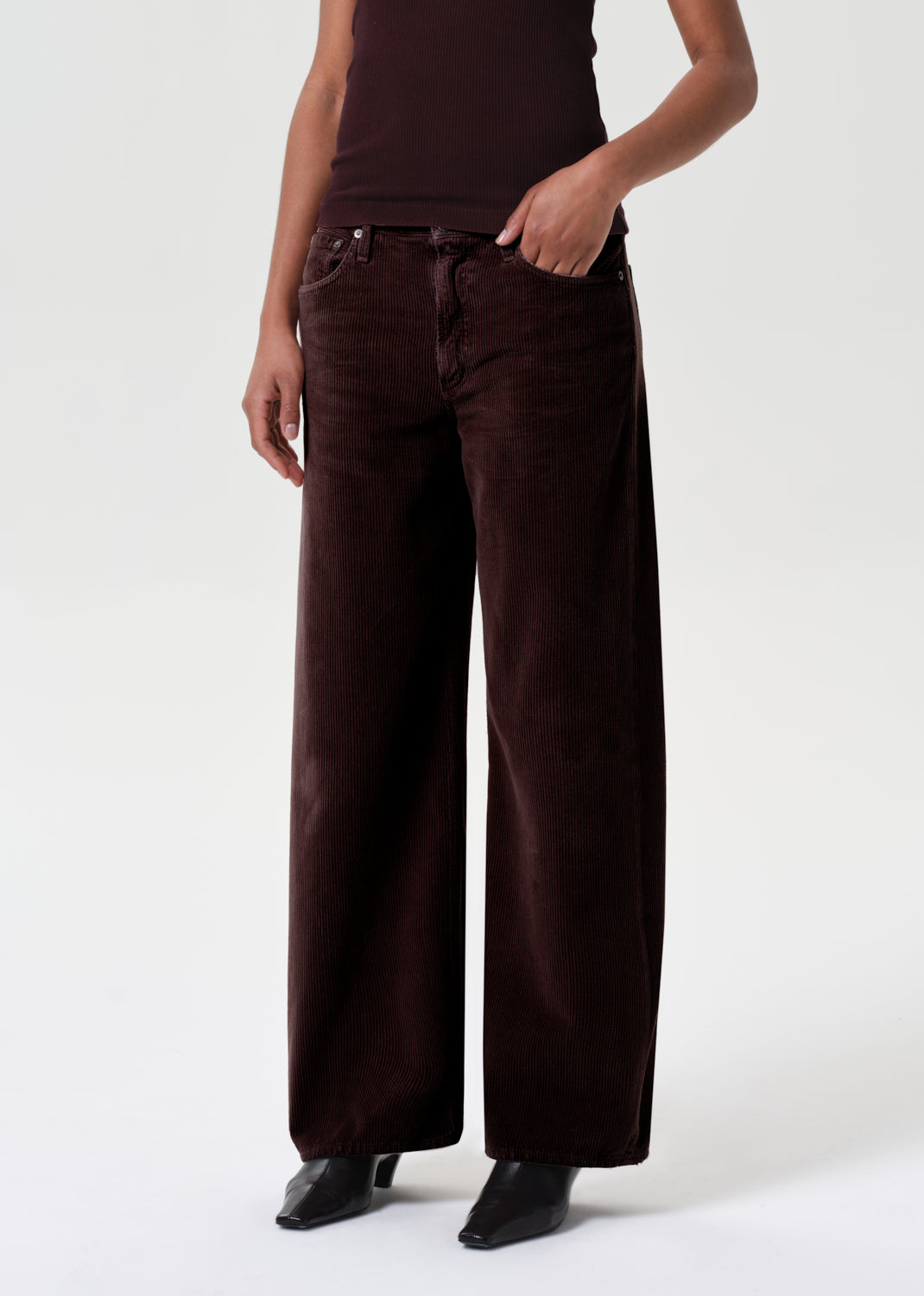 Looks Like: Dark deep burgundy corduroy pant