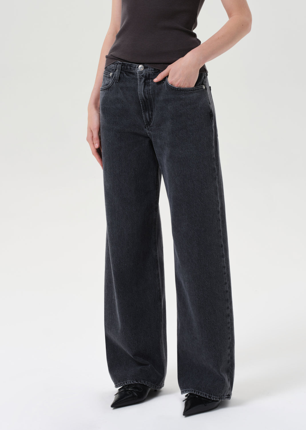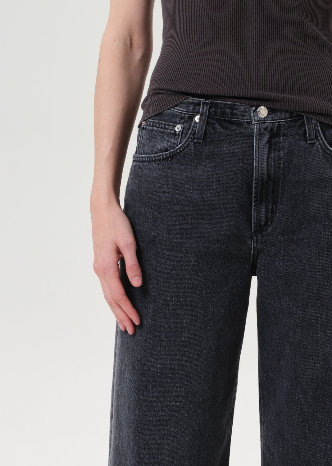 Looks Like: Medium washed out black denim pant