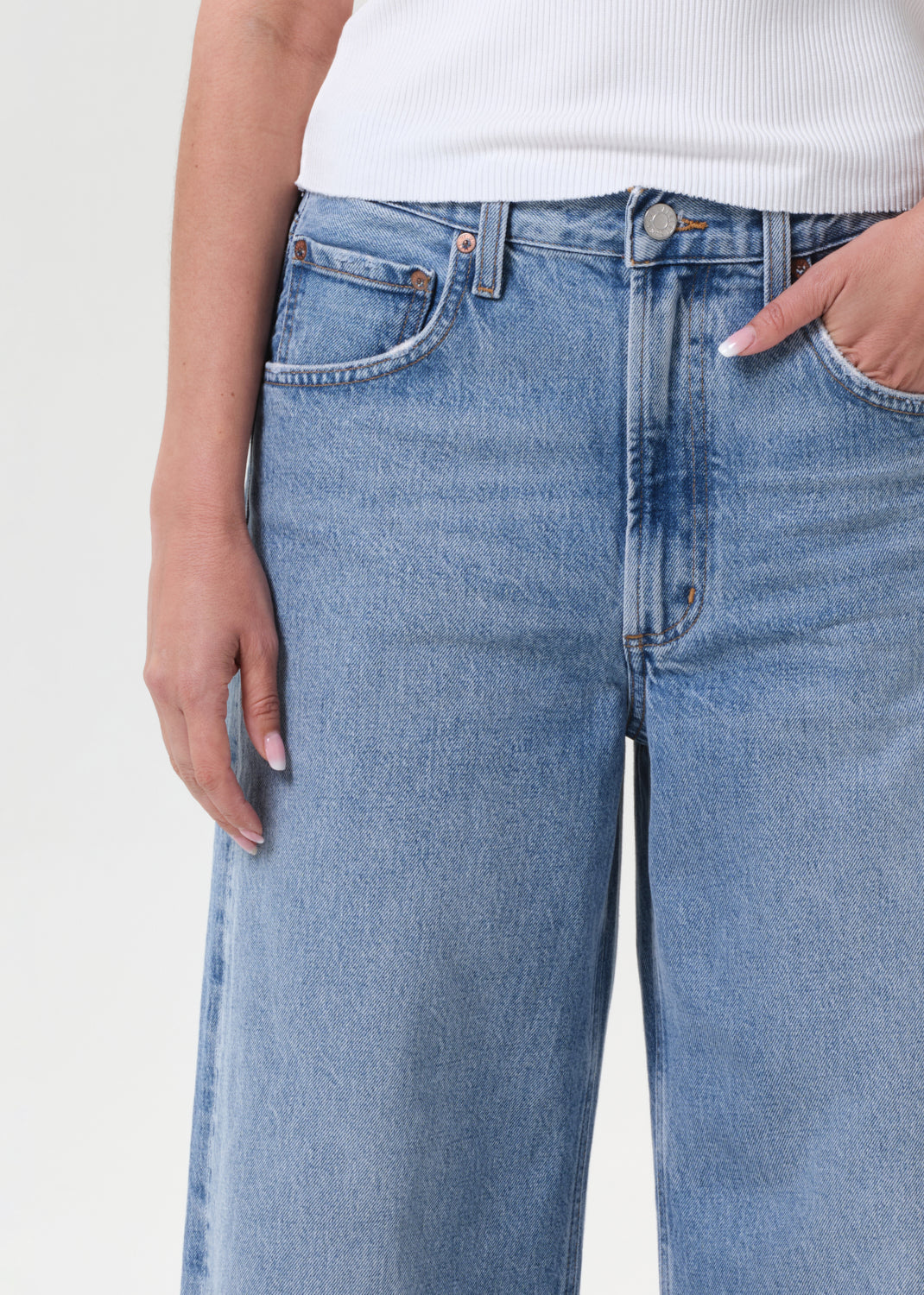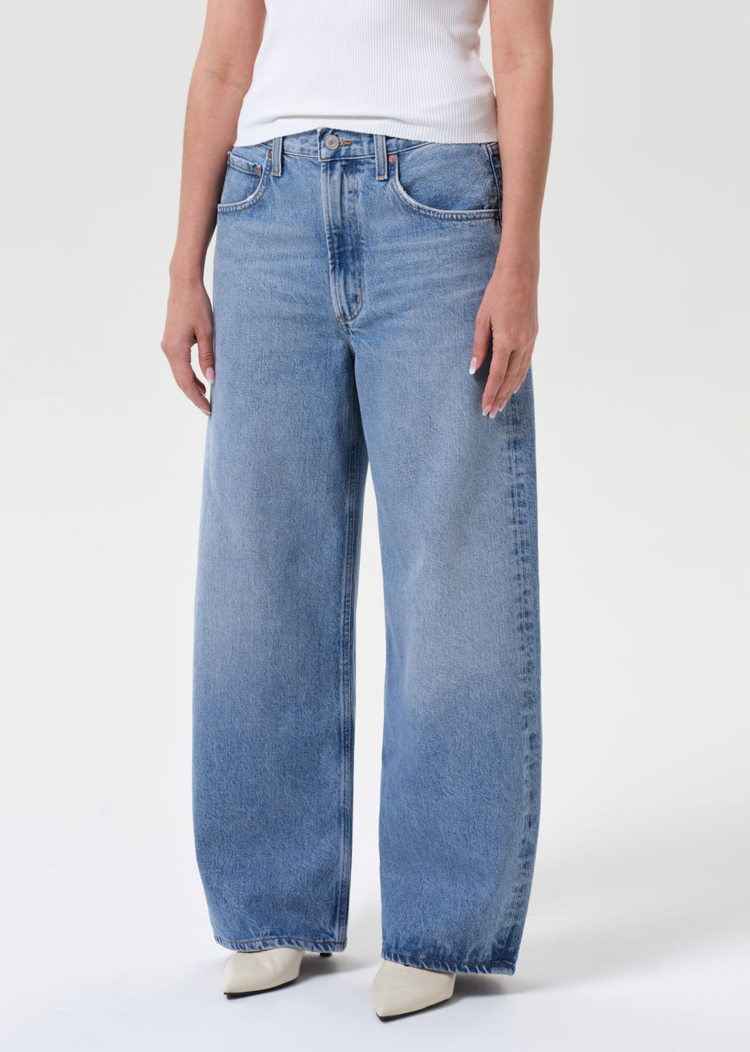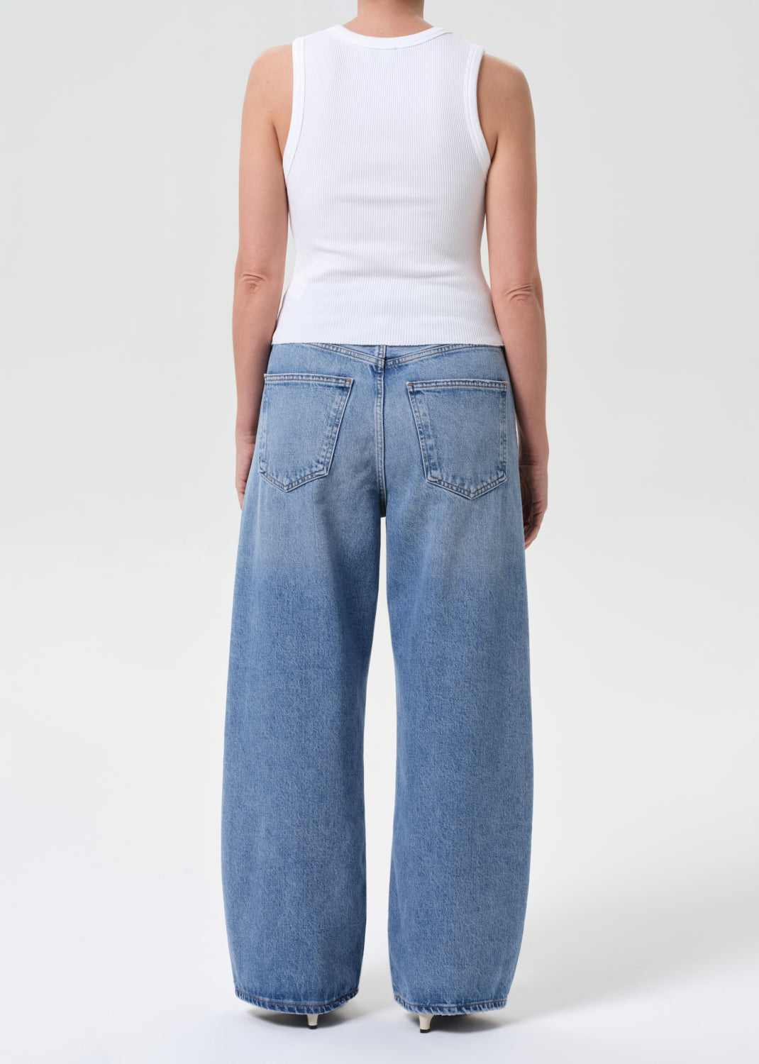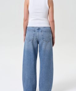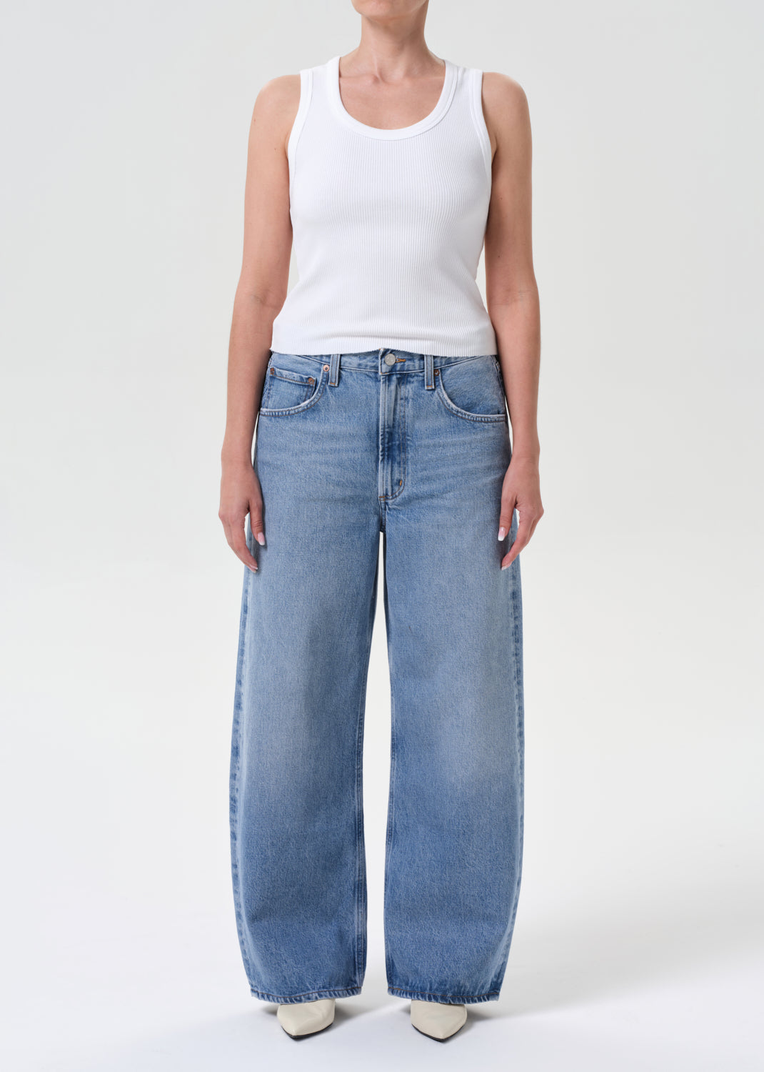 An updated twist on the barrel leg trend. This fit offers a comfortable and easy top block with a mid-rise waist. The sleek, low curved out seam gently tapers down to the ankle for a subtle yet sophisticated look. Now featured in a petite inseam of 28″. For reference, our model is 5’3 ½” and is wearing a Size 27.