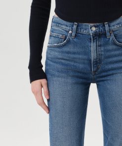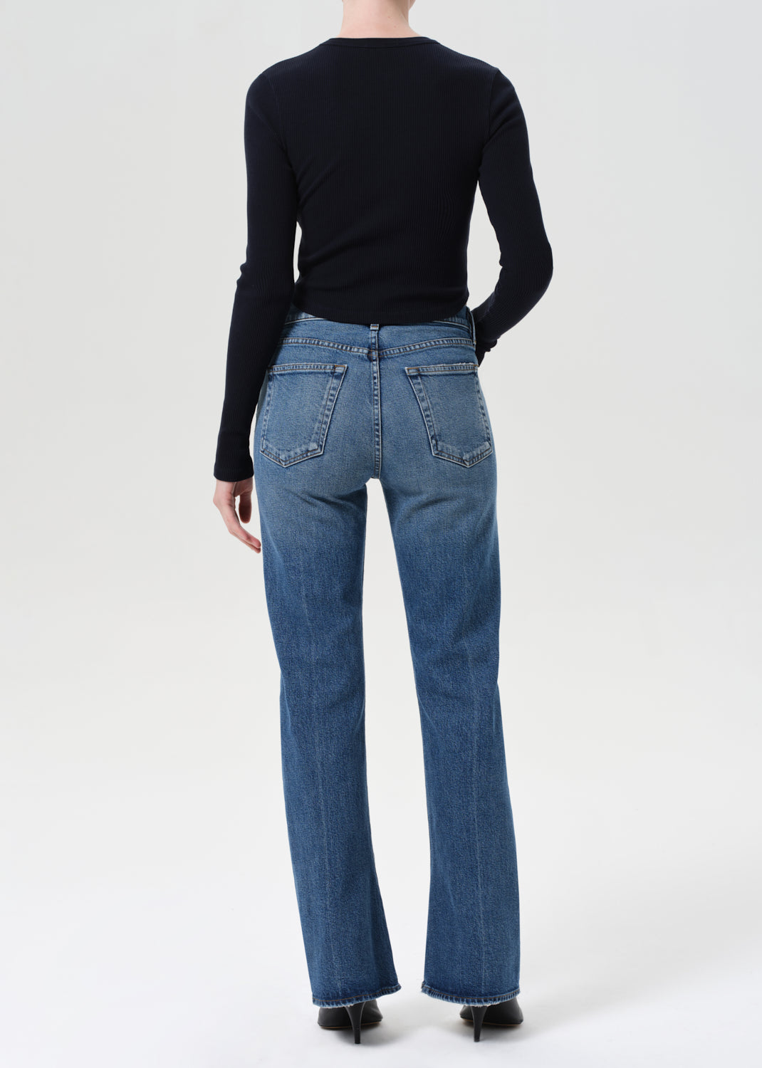 A modern bootcut with a mid-rise waist, this silhouette fits slim through the hip and opens into a subtle kick at the hem. Crafted from comfort stretch regenerative cotton denim with a soft hand, it’s finished in a medium indigo wash with worn-in fading and whiskering for an authentically vintage feel. Pair with a slim knit or boxy tee to strike the right balance.