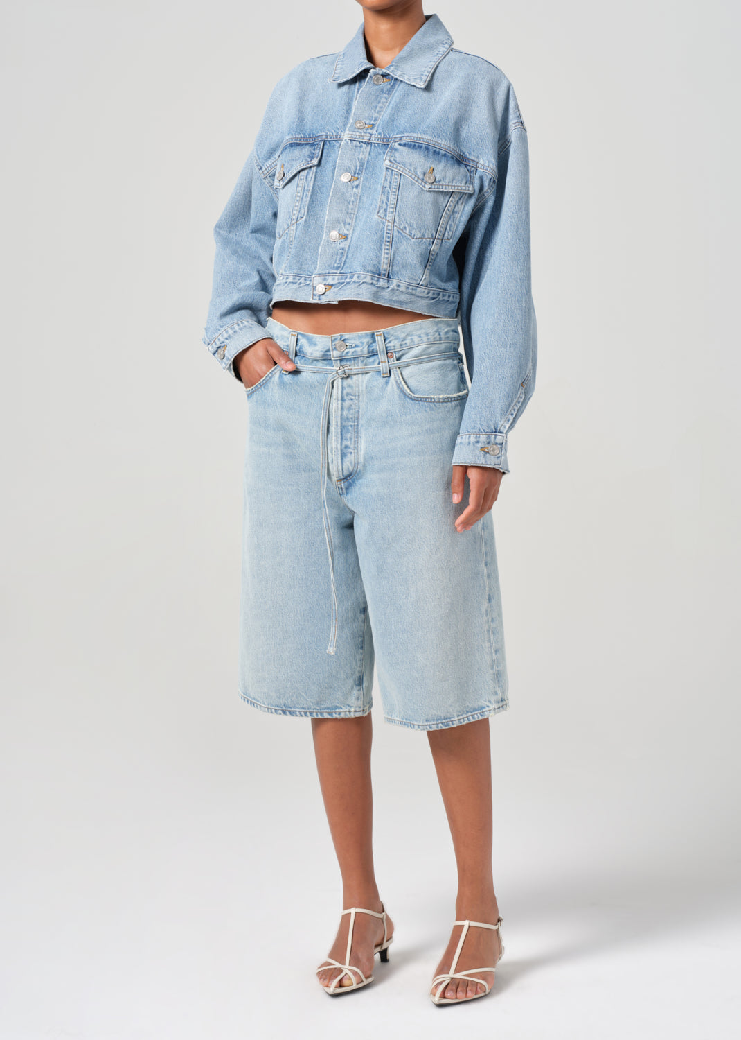 An updated take on a classic, the Palmer in light indigo from the Weightless Collection offers a relaxed, effortless vibe. Crafted from regenerative cotton, it features a subtle cropped body with low, exaggerated balloon sleeves for a modern twist. The lightweight feel of the fabric makes it perfect for layering throughout the seasons, while the light indigo wash adds a soft, lived-in appeal. A versatile piece that easily transitions from casual days to elevated looks.