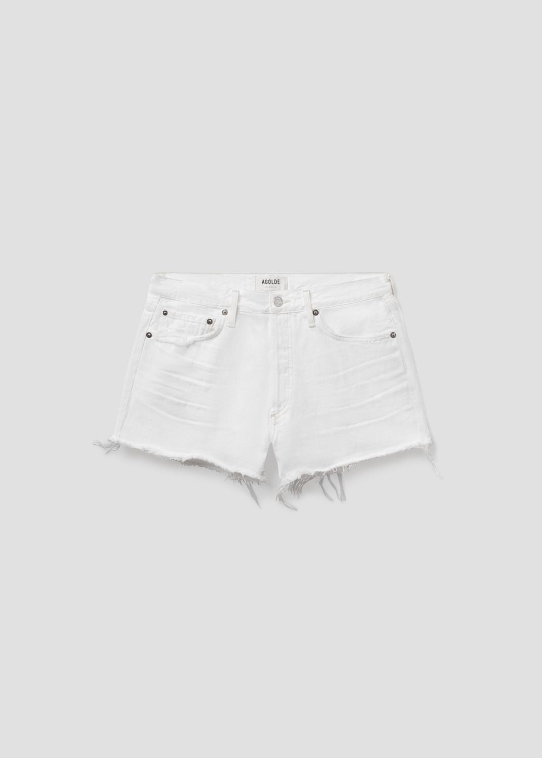 The Parker Short in clean white denim offers a high-rise fit with a relaxed silhouette through the hips. Made from regenerative cotton, these non-stretch shorts deliver a crisp, fresh look that’s both stylish and versatile. Perfect for pairing with casual tees or lightweight blouses for an effortless, laid-back vibe.