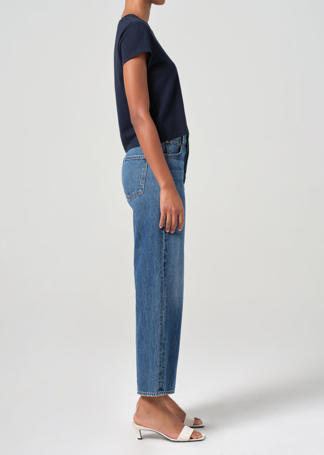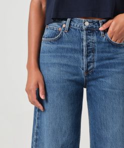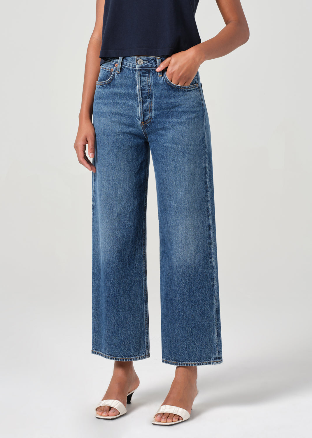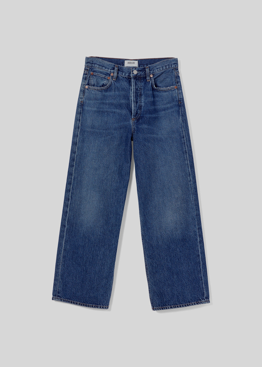AGOLDE’s Ren jeans from the Weightless Collection offer the perfect blend of comfort and style. Made from regenerative cotton, they feature a high-rise waist and cropped wide legs for a relaxed yet flattering silhouette. The lightweight fabric ensures all-day comfort, making them ideal for casual wear. Pair them with a half-tucked tee for a cool, effortless look.