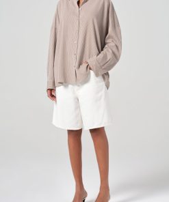 The Roux Shirt is a timeless striped button-up reimagined with contemporary flair. Crafted from ultra-lightweight poplin cotton, it features voluminous balloon sleeves that add a modern, feminine touch. With its clean, crisp design and true-to-size fit, this long-sleeve shirt offers effortless sophistication for any occasion. Pair with relaxed denim or tailored trousers for a versatile, elevated look.