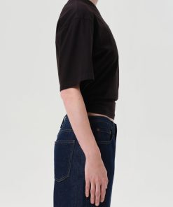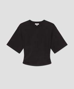 A fresh take on the classic tee. The Shari is cut from lightweight cotton jersey with exaggerated short sleeves and a slightly cropped fit.