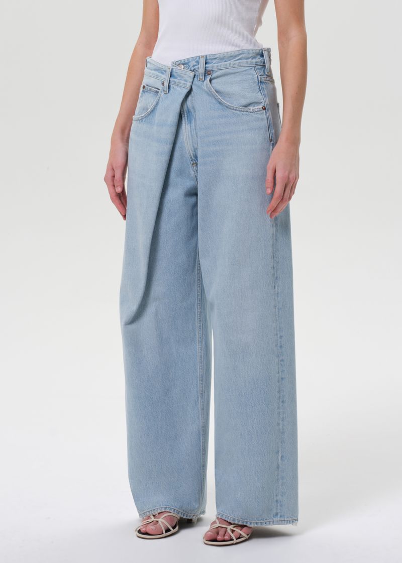 The Vana Jean Fold Jean in super pale indigo offers a fresh, worn-in look that perfectly captures the relaxed trend of the moment. With a bold, directional silhouette, these jeans feature a distinctive “fold” closure and classic 5-pocket styling. The low-slung fit and roomy, full-length leg create an effortlessly oversized vibe, embracing the laid-back, relaxed aesthetic. Crafted from regenerative cotton, they’re not only stylish but also sustainable, promoting soil health and carbon sequestration. Pair them with a tucked-in tee and chunky boots for an edgy touch, or style with an oversized sweatshirt and sneakers for a cool, off-duty look.